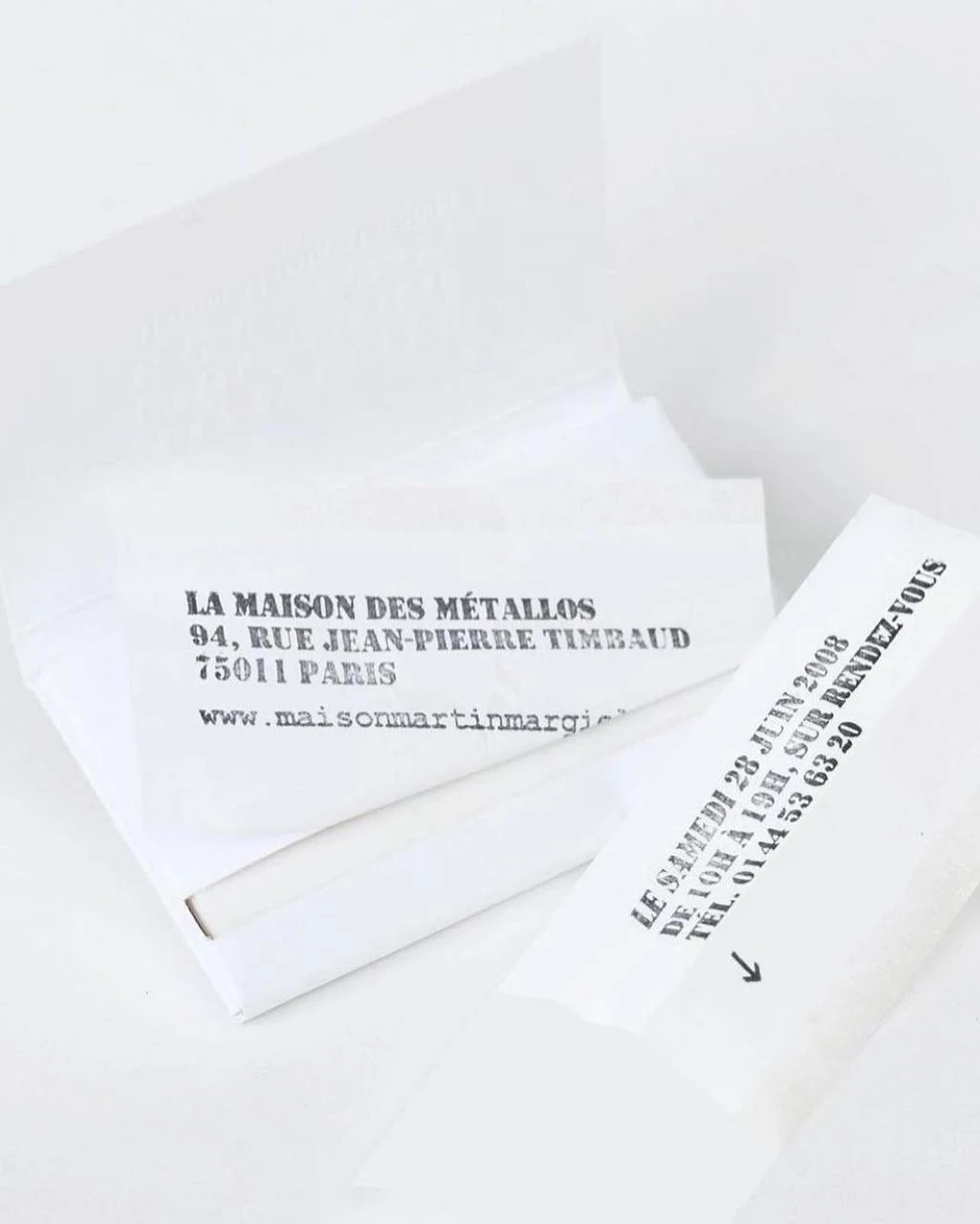 Работы выпускника Антверпенской академии существовали в собственном контексте, который дизайнер создавал вокруг себя. Поддерживать эту среду Маржела умел даже через такие детали, как пригласительные. Если крупные бренды отправляли инфлюенсерам эффектные шоу-боксы или приглашали их в роскошные пресс-туры в Марокко, то бельгиец действовал куда скромнее – и при этом куда интереснее.