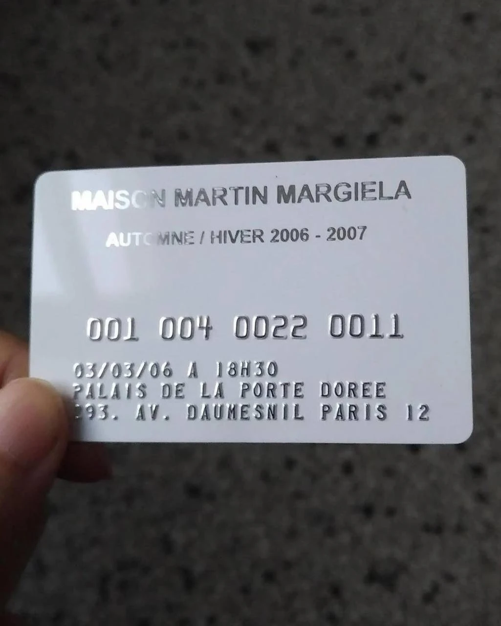 Мартина по праву можно назвать призраком fashion-оперы. Он выходил на поклон анонимно, а его пригласительные нередко прятали сюрпризы. Так, к Pitti Uomo’06 бренд рассылал DVD-диски, на которых при запуске появлялось приглашение. В 2012 году гостей снабдили карманными фонариками с лазерной указкой: на стене загорались дата и место показа S/S 2013. Через пару лет Vetements повторил этот приём – прямая дань легендарному предшественнику.