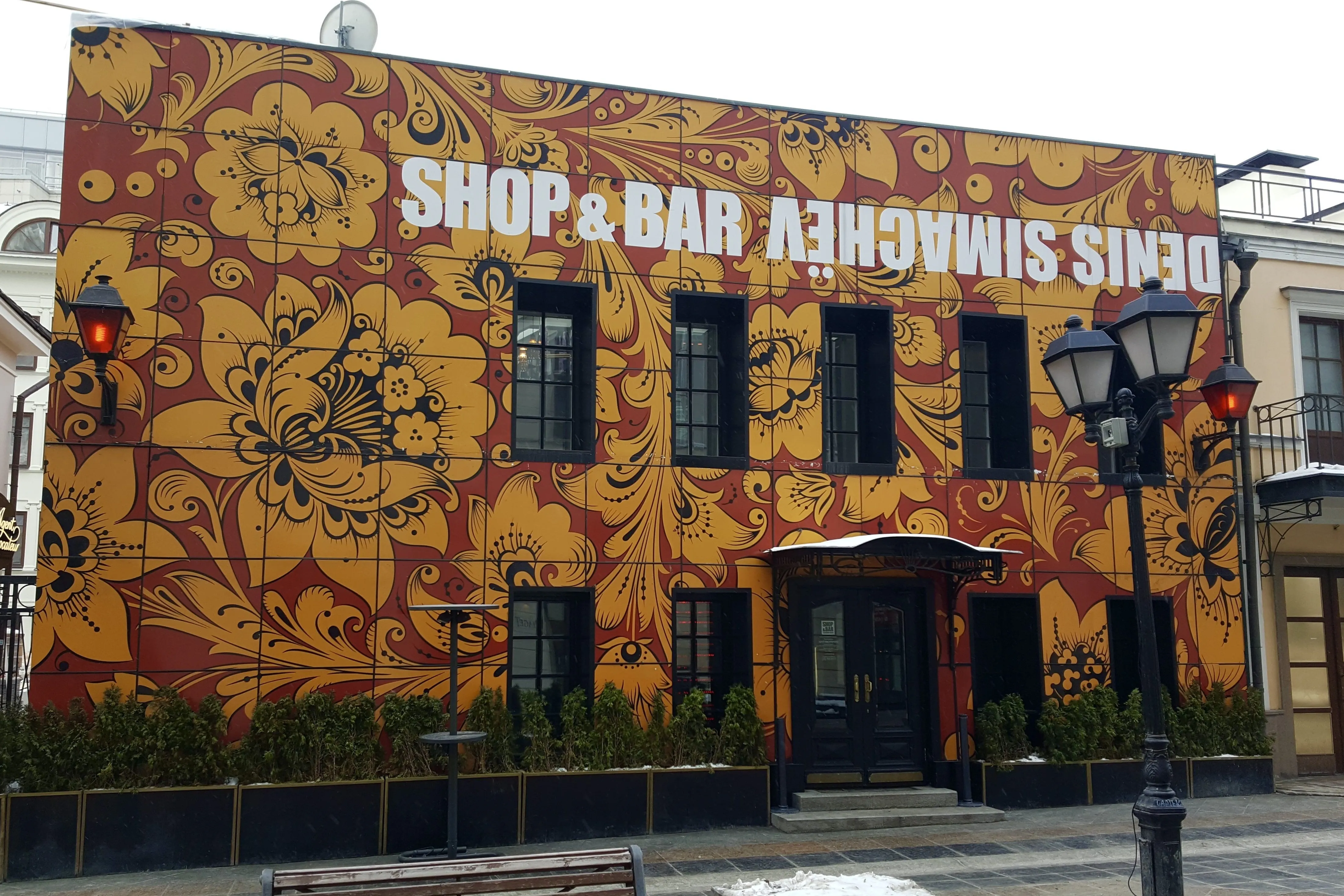Одним из первых, кто взглянул на хохлому под новым углом, стал Денис Симачёв. Его клуб SIMACHЁV стал известным не только благодаря легендарным вечеринкам, но и благодаря культовому фасаду, украшенному знаковым рисунком.