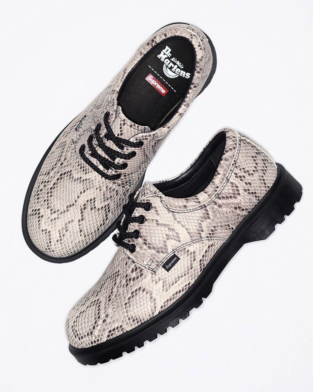 Бренды переосмыслили модель Postal 4-Eye и выпустят её в двух расцветках: классической чёрной и с тиснёным верхом под змеиную кожу.