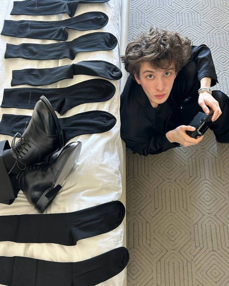 И, если вы посмотрите на Эйдельштейна, который сегодня сотрудничает с самым известным голливудским агентством WME, – он всегда выглядит расслабленно и даже несколько инфантильно, что ничуть его не портит. Кто ещё будет скользить в туфлях по ковровой дорожке «Оскара»? Или кто проспит примерку кастомного костюма Balenciaga, который целая команда бренда привезла его к вам в номер перед самой важной кинопремией мира? Всё это про Марка, который улыбается, кажется, всему. И, кстати, складывается впечатление, что Balenciaga – вторая (после Gucci, разумеется) его модная любовь. Для французского дома он уже успел сняться в кампейне летней коллекции 2025 года вместе с великим Кайлом Маклахленом.